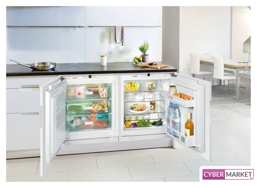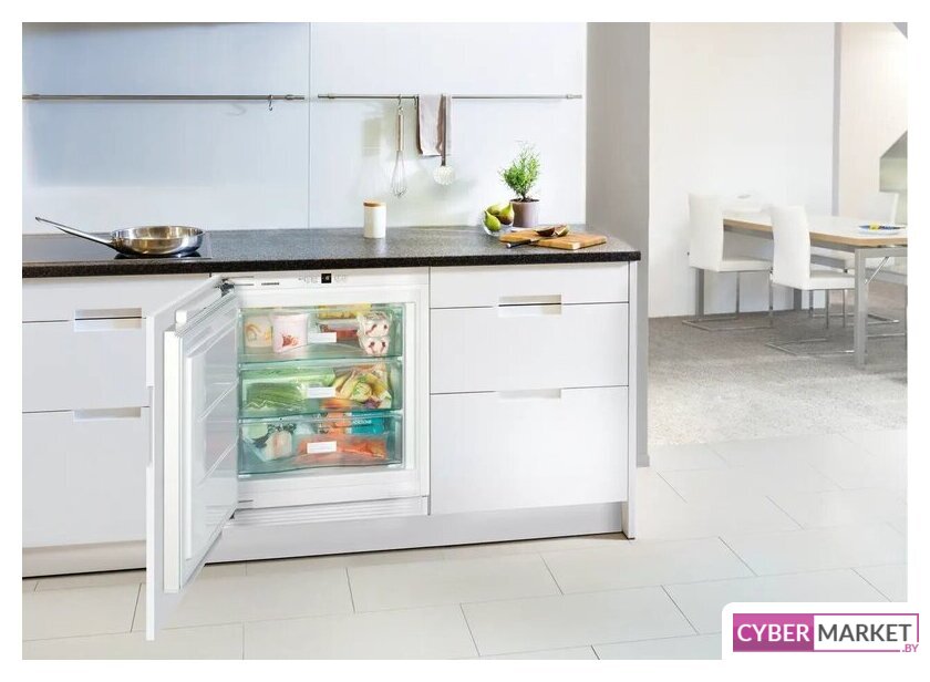 встраиваемый, скользящие направляющие, полный No Frost, электронное управление, полезный объём: 267 л (193 + 74 л), зона свежести, перенавешиваемые двери, 54x55x177.5 см, белый
