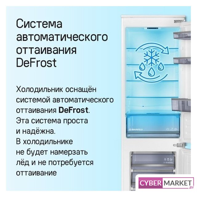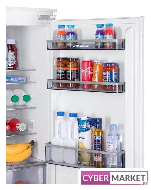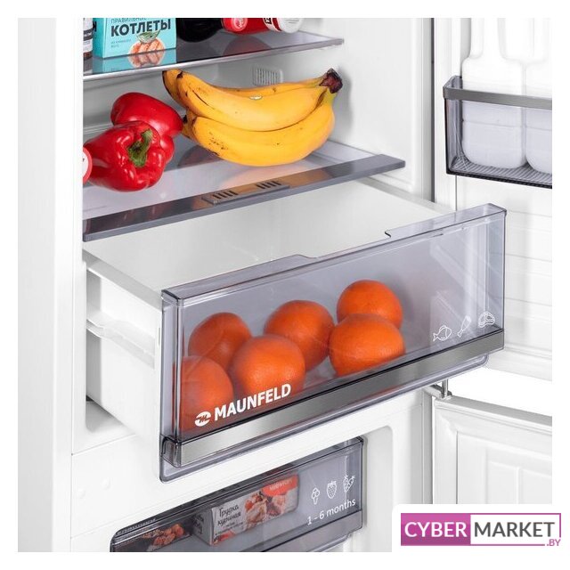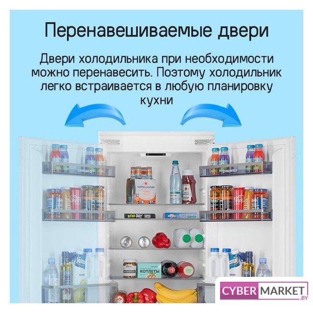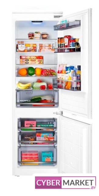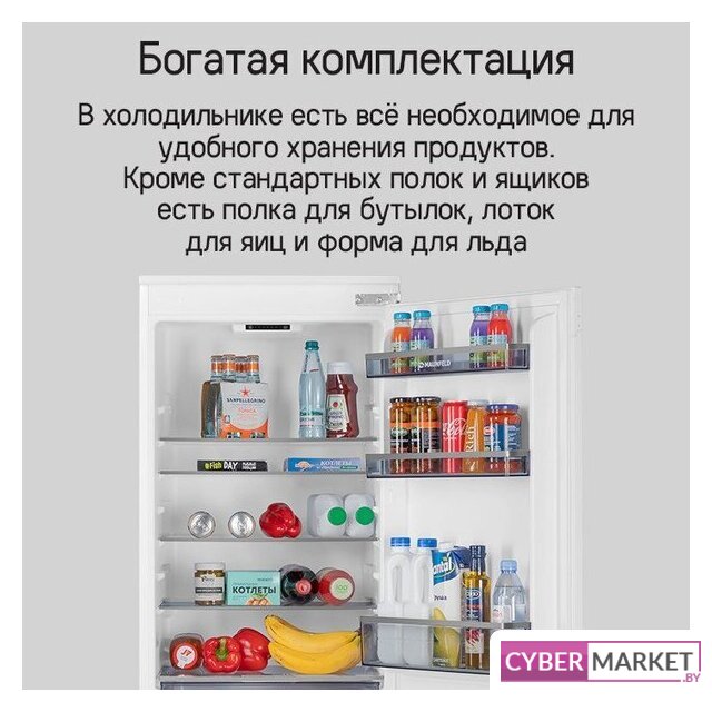 встраиваемый, полный No Frost, электронное управление, класс A+, полезный объём: 241 л (177 + 64 л), инверторный компрессор, перенавешиваемые двери, полка для вина, лоток для яиц, 54x55x176.9 см, белый