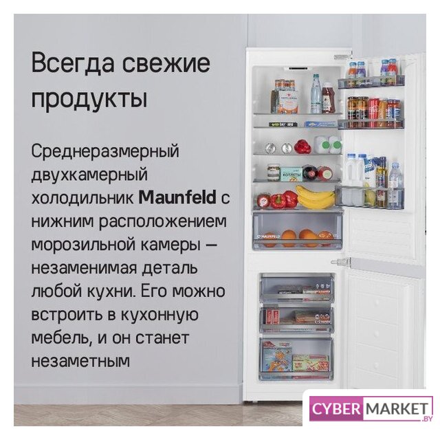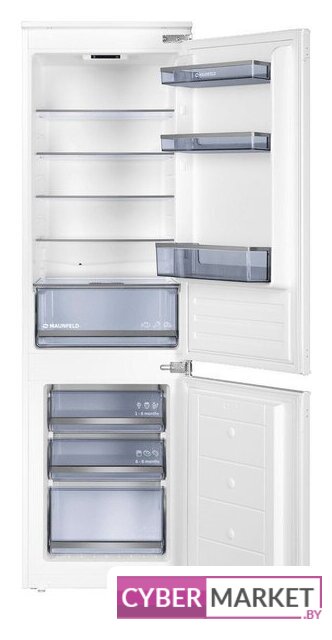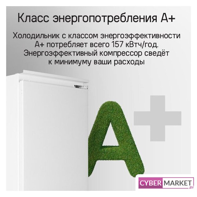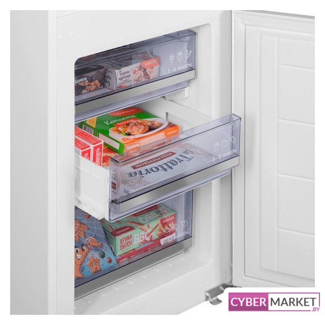 встраиваемый, без No Frost, электронное управление, класс A+, полезный объём: 293 л (225 + 75 л), перенавешиваемые двери, 54x55x193.7 см, белый