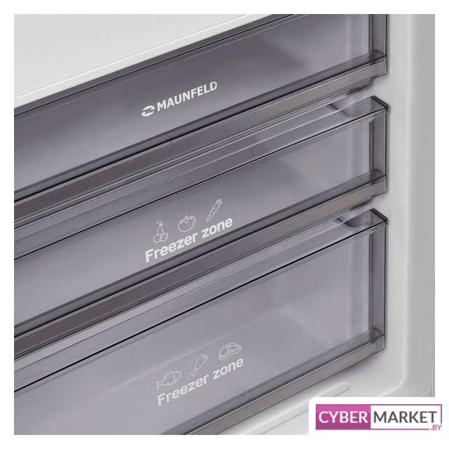 встраиваемый, полный No Frost, электронное управление, класс A+, полезный объём: 341 л (257 + 84 л), инверторный компрессор, зона свежести, перенавешиваемые двери, лоток для яиц, 69x55x193.7 см, белый