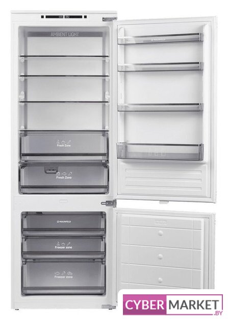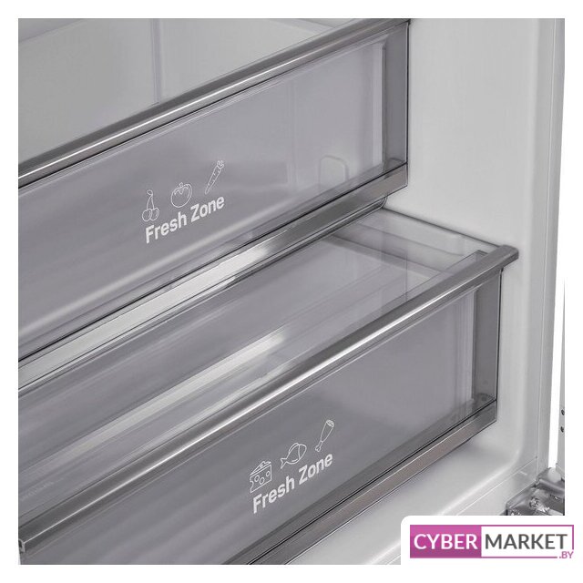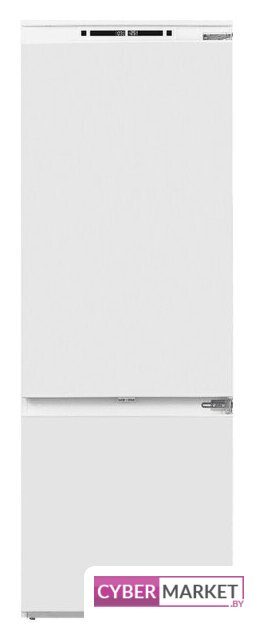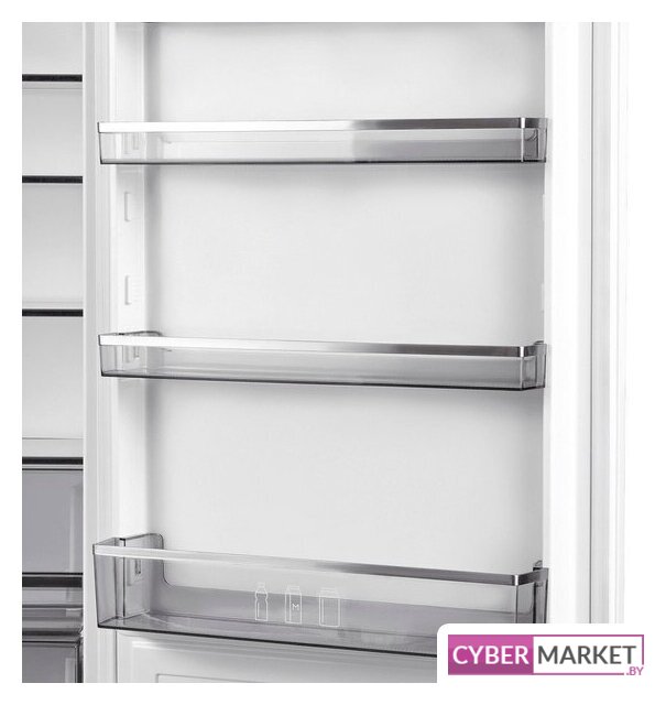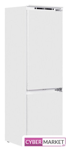 встраиваемый, полный No Frost, электронное управление, полезный объём: 298 л (224 + 74 л), инверторный компрессор, зона свежести, перенавешиваемые двери, полка для вина, лоток для яиц, 54x55x193.5 см, белый