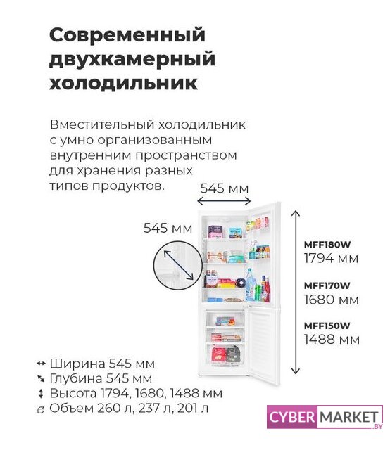 отдельностоящий, полный No Frost, электронное управление, класс A+, полезный объём: 311 л (213 + 98 л), инверторный компрессор, перенавешиваемые двери, выдвижная полка, лоток для яиц, 59.5x67.5x178 см, белый