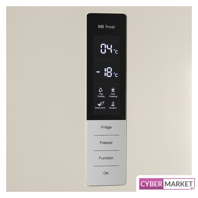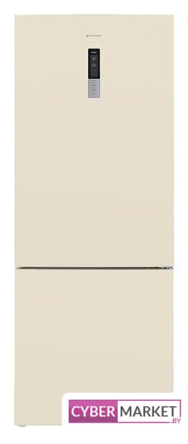 отдельностоящий, полный No Frost, электронное управление, класс A+, полезный объём: 351 л (257 + 94 л), перенавешиваемые двери, полка для вина, лоток для яиц, отделка: стекло, 59.5x63.5x200 см, бежевый