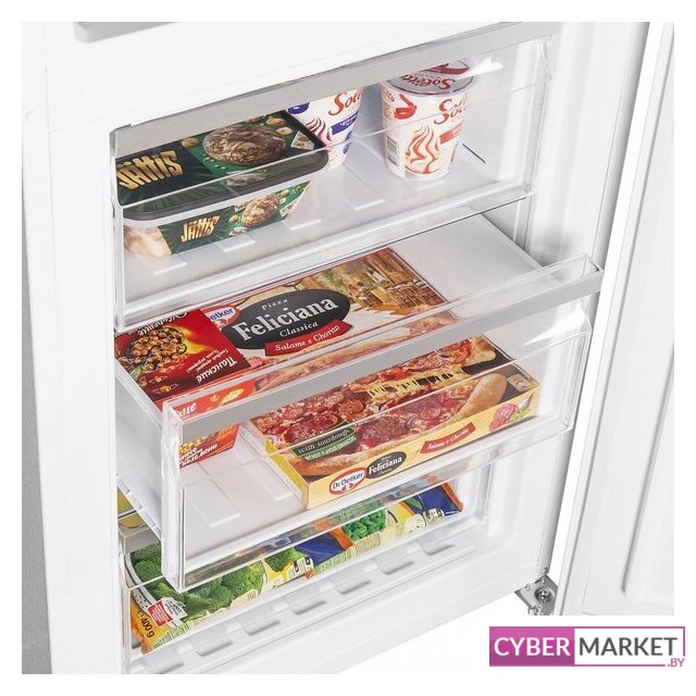 отдельностоящий, полный No Frost, электронное управление, класс A+, полезный объём: 305 л (211 + 94 л), зона свежести, перенавешиваемые двери, лоток для яиц, 59.5x66x186.8 см, серебристый