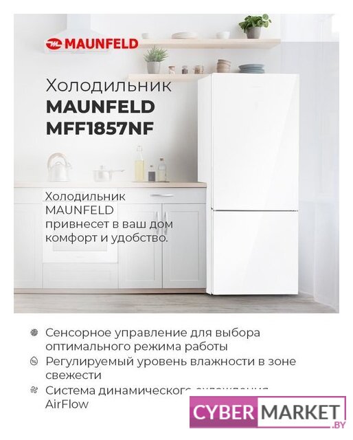 отдельностоящий, полный No Frost, электронное управление, класс A+, полезный объём: 261 л (182 + 79 л), инверторный компрессор, перенавешиваемые двери, лоток для яиц, 59.5x65.5x173.7 см, белый