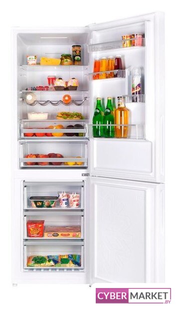 отдельностоящий, полный No Frost, механическое управление, класс A+, полезный объём: 430 л (261 + 169 л), инверторный компрессор, лоток для яиц, 83.3x63.7x177 см, белый