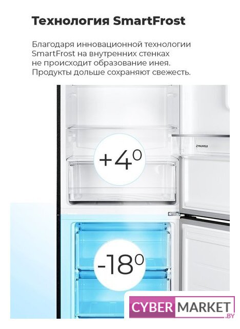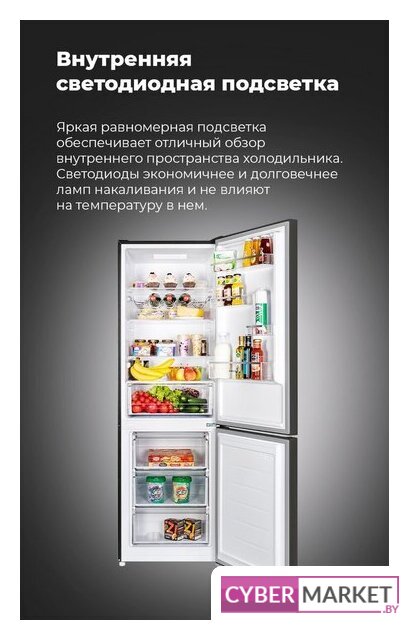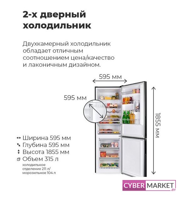 отдельностоящий, полный No Frost, электронное управление, класс A+, полезный объём: 357 л (211 + 125 л), зона свежести, перенавешиваемые двери, лоток для яиц, 59.5x66x206.8 см, белый
