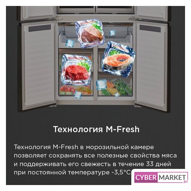 отдельностоящий, полный No Frost, сенсорное управление, класс A+, полезный объём: 498 л (330 + 168 л), инверторный компрессор, зона свежести, нулевой зазор, лоток для яиц, 83.5x59.9x191 см, темная сталь