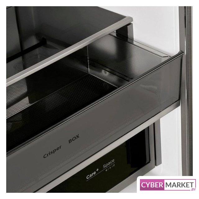 отдельностоящий, No Frost (морозильная камера), сенсорное управление, класс A+++, полезный объём: 349 л (255 + 94 л), инверторный компрессор, зона свежести, перенавешиваемые двери, складная полка, лоток для яиц, отделка: защита от отпечатков, 59.5x67.5x201.5 см, темная сталь