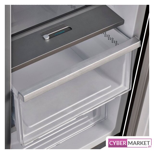 отдельностоящий, полный No Frost, сенсорное управление, полезный объём: 617 л (412 + 205 л), инверторный компрессор, диспенсер, полка для вина, лоток для яиц, 91.3x73.5x179 см, серый