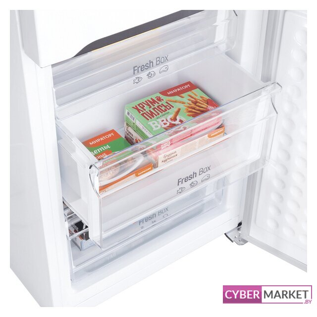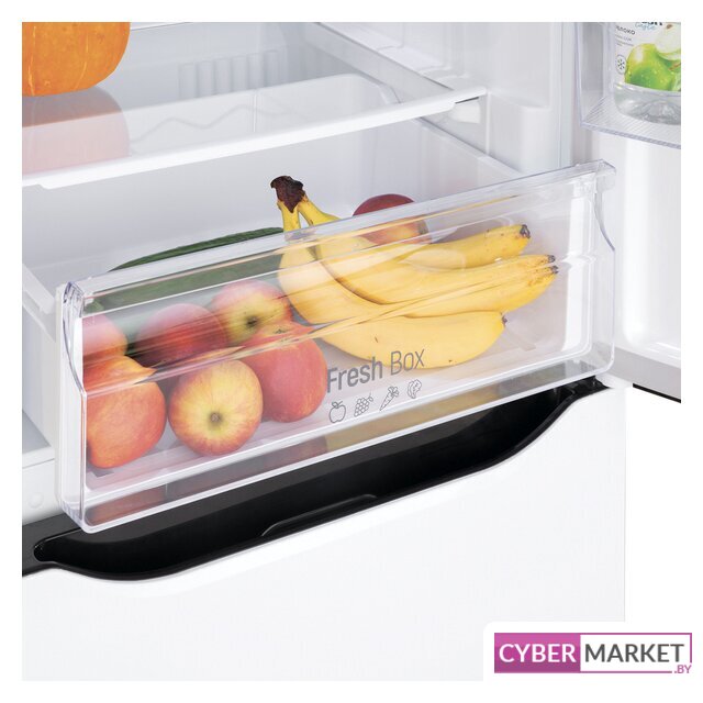 отдельностоящий, полный No Frost, электронное управление, класс A+, полезный объём: 367 л (269 + 98 л), инверторный компрессор, зона свежести, перенавешиваемые двери, лоток для яиц, 59.5x67.5x201 см, белый