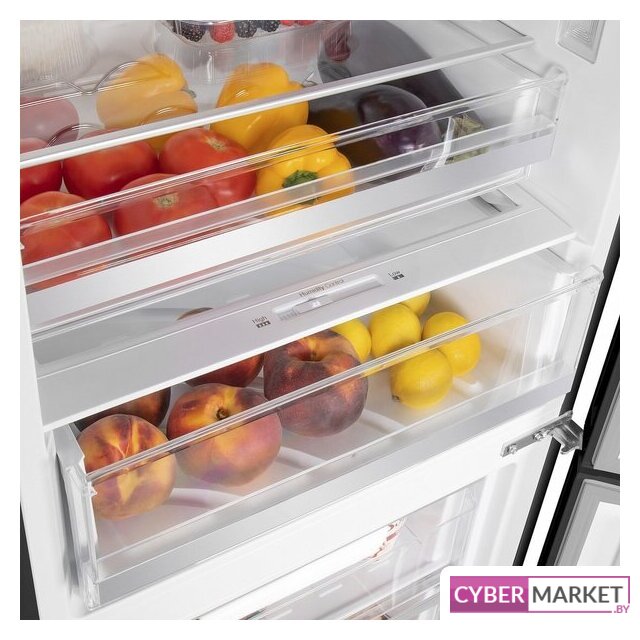 отдельностоящий, полный No Frost, сенсорное управление, класс A++, полезный объём: 317 л (223 + 94 л), инверторный компрессор, перенавешиваемые двери, 59.5x64x185 см, черный/нержавеющая сталь