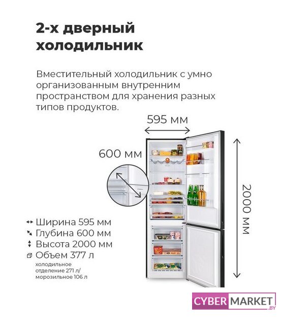 отдельностоящий, полный No Frost, электронное управление, класс A+, полезный объём: 317 л (223 + 94 л), перенавешиваемые двери, лоток для яиц, отделка: стекло, 59.5x63.5x185 см, серебристый