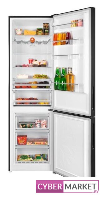 отдельностоящий, No Frost (морозильная камера), электронное управление, класс A, полезный объём: 360 л (266 + 94 л), инверторный компрессор, перенавешиваемые двери, лоток для яиц, 59.7x67.5x201.5 см, белый