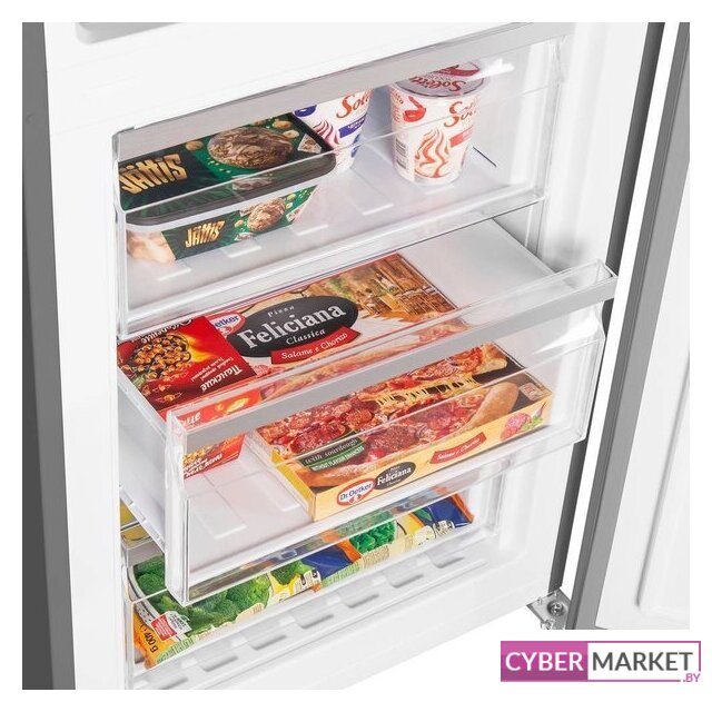 отдельностоящий, полный No Frost, электронное управление, класс A+, полезный объём: 430 л (261 + 169 л), инверторный компрессор, лоток для яиц, 83.3x63.7x177 см, нержавеющая сталь