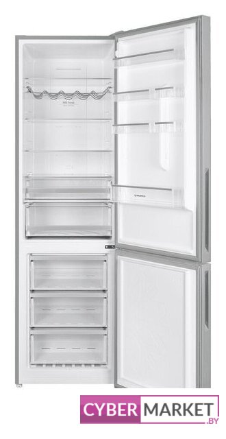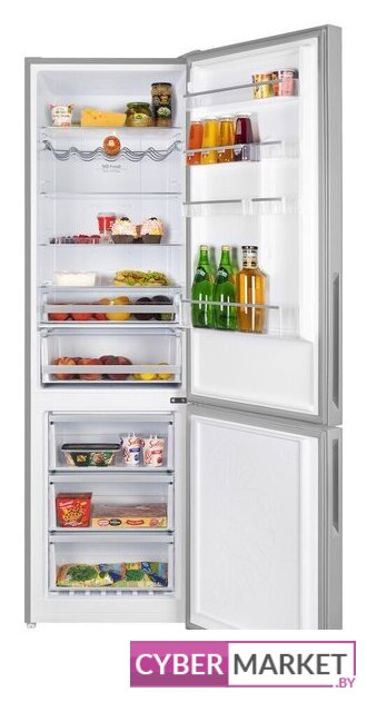 отдельностоящий, полный No Frost, электронное управление, класс A++, полезный объём: 384 л (277 + 107 л), инверторный компрессор, зона свежести, перенавешиваемые двери, складная полка, полка для вина, лоток для яиц, 59.5x68.2x203 см, серебристый