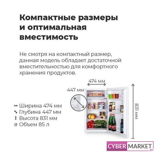 отдельностоящий, без No Frost, механическое управление, класс A+, полезный объём: 85 л, перенавешиваемые двери, лоток для яиц, 47.4x44.7x83.1 см, серебристый