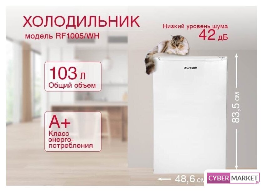 отдельностоящий, без No Frost, механическое управление, класс A+, перенавешиваемые двери, 48.6x53.6x83.9 см, белый