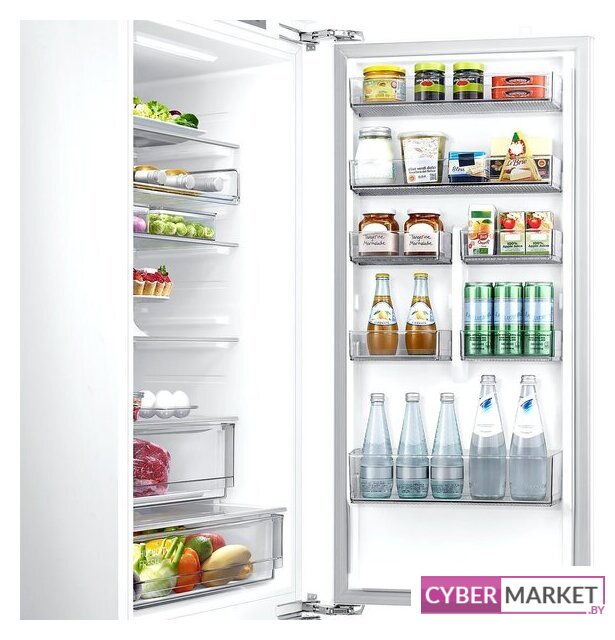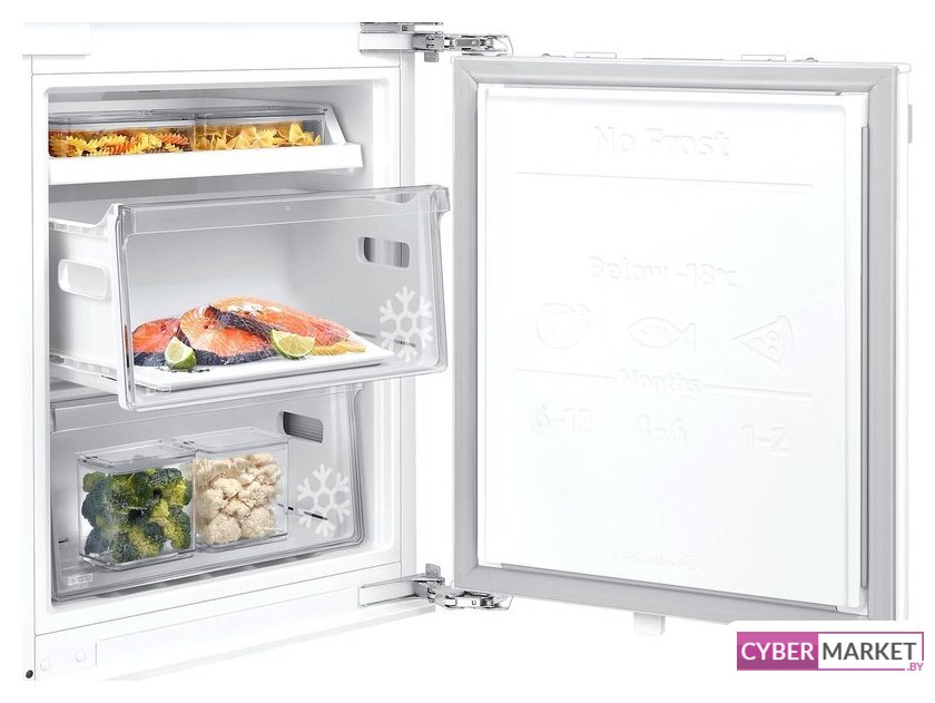 встраиваемый, полный No Frost, электронное управление, класс A+, полезный объём: 341 л (257 + 84 л), инверторный компрессор, зона свежести, перенавешиваемые двери, лоток для яиц, 69x55x193.7 см, белый