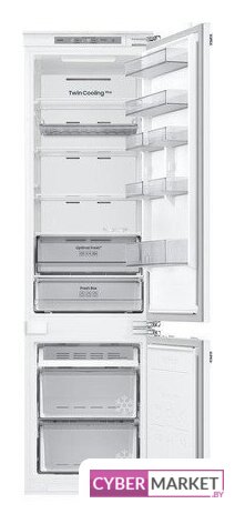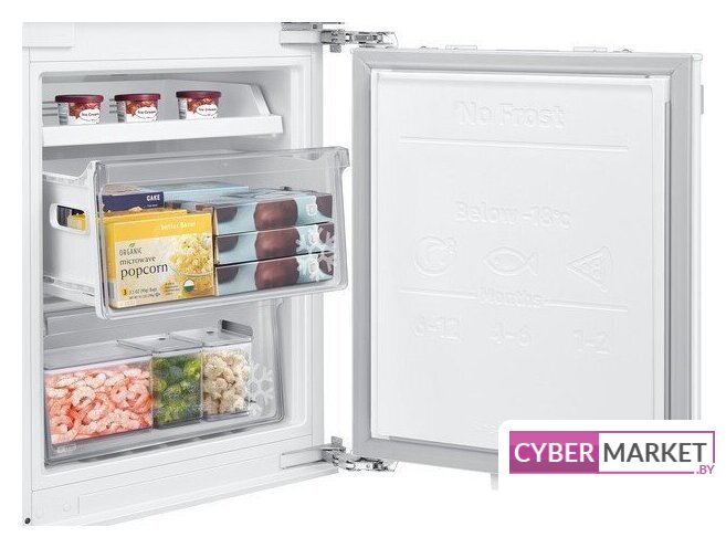встраиваемый, полный No Frost, электронное управление, полезный объём: 267 л (193 + 74 л), инверторный компрессор, зона свежести, перенавешиваемые двери, полка для вина, 54x55x177.5 см, белый