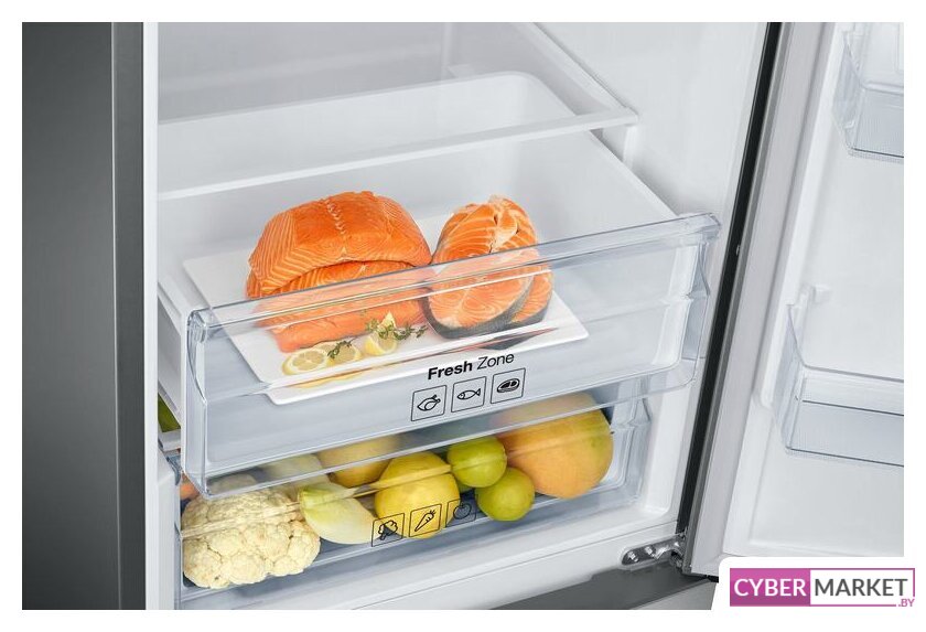 отдельностоящий, полный No Frost, электронное управление, полезный объём: 368 л (279 + 89 л), зона свежести, перенавешиваемые двери, полка для вина, лоток для яиц, 60x66x203 см, нержавеющая сталь