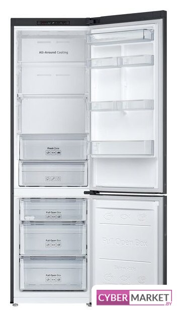 отдельностоящий, полный No Frost, электронное управление, класс A+ (277 + 107 л), инверторный компрессор, перенавешиваемые двери, нулевой зазор, лоток для яиц, 59.5x68.2x203 см, графит
