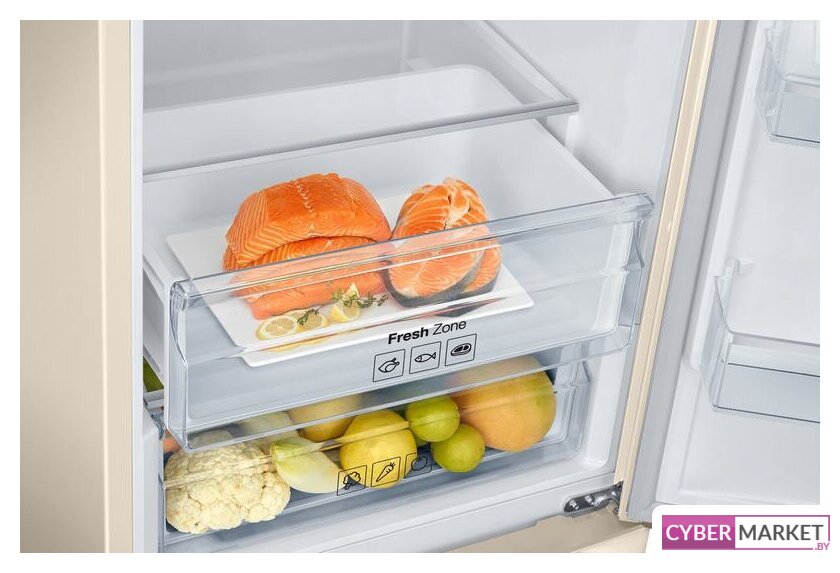 отдельностоящий, No Frost (морозильная камера), электронное управление, класс A, полезный объём: 360 л (266 + 94 л), инверторный компрессор, зона свежести, перенавешиваемые двери, подставка-лоток для бутылок, лоток для яиц, 59.7x67.5x201.5 см, серебристый