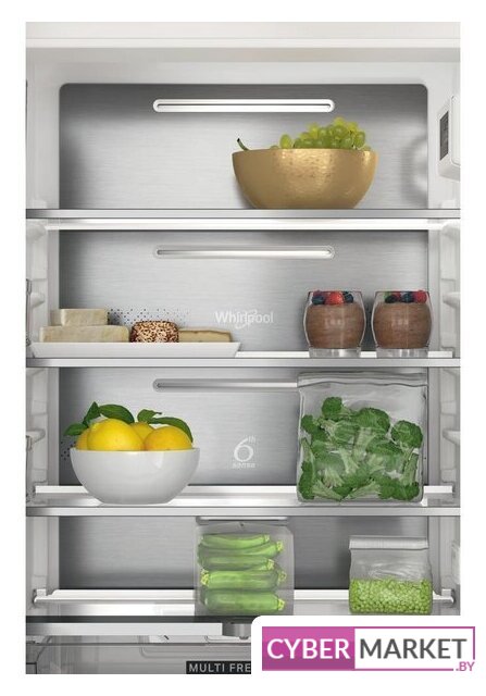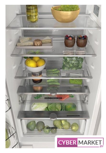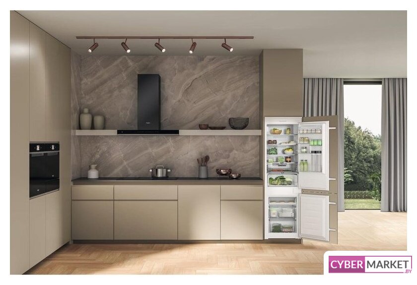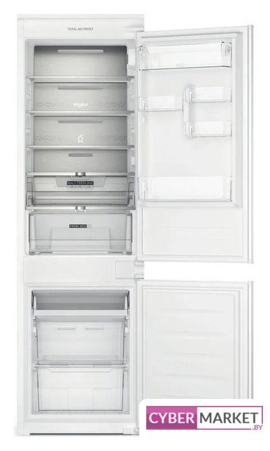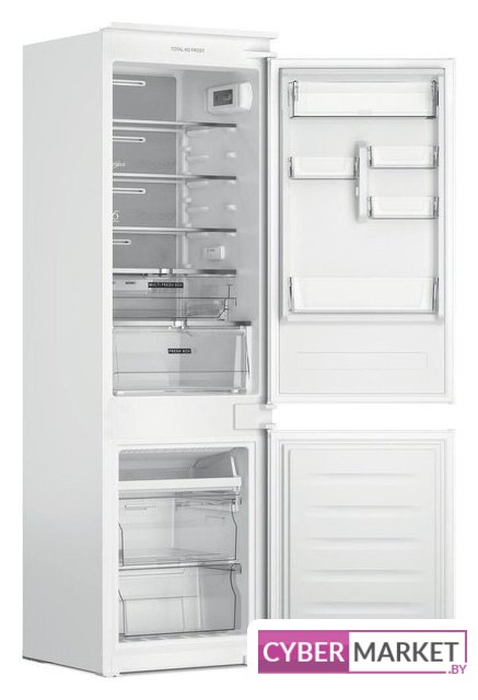 встраиваемый, полный No Frost, электронное управление, класс A, полезный объём: 284 л (215 + 69 л), инверторный компрессор, зона свежести, перенавешиваемые двери, полка для вина, лоток для яиц, 54x54.5x193.5 см, белый