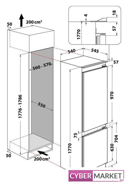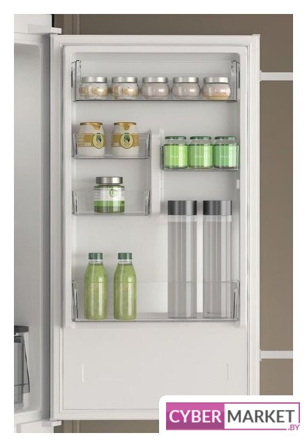 встраиваемый, полный No Frost, механическое управление, класс A+, полезный объём: 241 л (182 + 59 л), перенавешиваемые двери, лоток для яиц, 54x51x178.5 см, белый