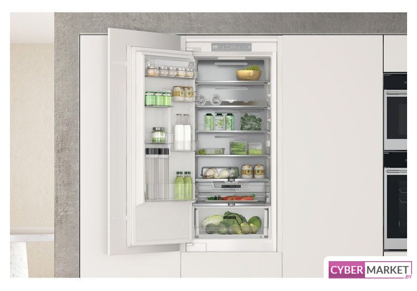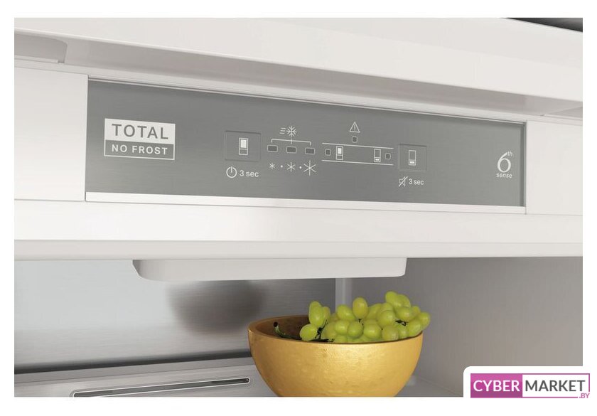 встраиваемый, скользящие направляющие, No Frost (морозильная камера), электронное управление, класс A+, полезный объём: 281 л (225 + 56 л), перенавешиваемые двери, полка для вина, лоток для яиц, 54x54x193.7 см, белый