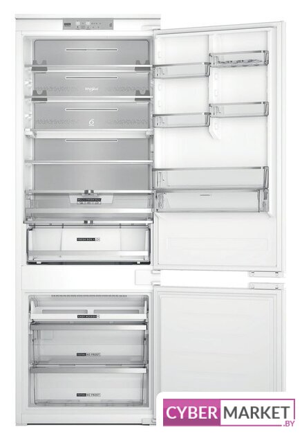 встраиваемый, скользящие направляющие, полный No Frost, электронное управление, полезный объём: 280 л (212 + 68 л), зона свежести, перенавешиваемые двери, складная полка, подставка-лоток для бутылок, лоток для яиц, 54x54.5x193.5 см, белый