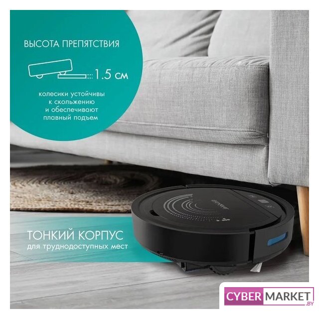 влажная уборка, мощность 25 Вт, сила всасывания 1200 Па, пылесборник 0.5 л, с турбощеткой, навигация: контактный бампер