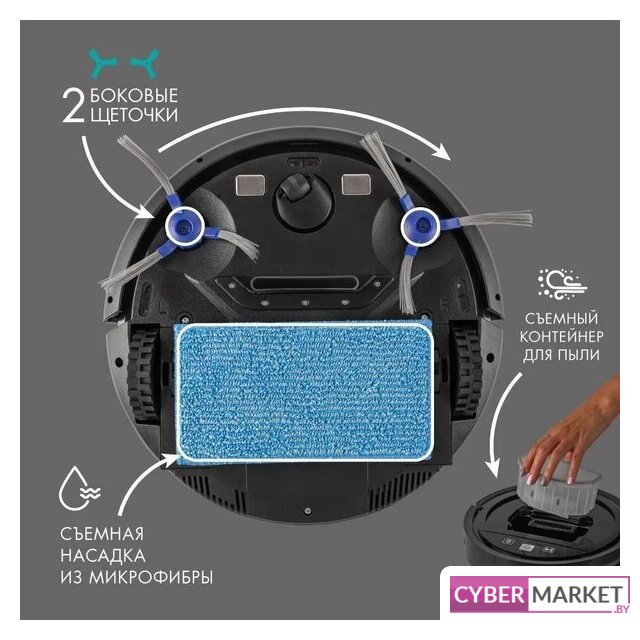 влажная уборка, мощность 15 Вт, пылесборник 0.3 л, навигация: контактный бампер, датчики перепада высоты