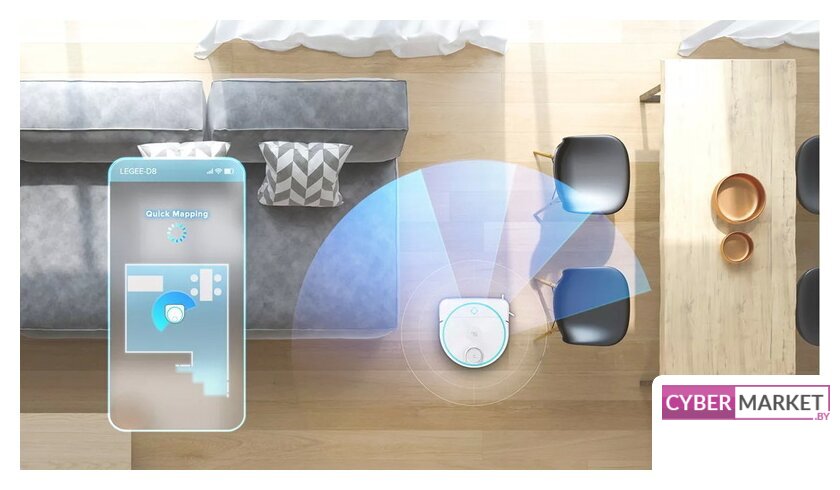 влажная уборка, фирменное приложение, сила всасывания 10000 Па, с турбощеткой, навигация: контактный бампер, лидар, датчики перепада высоты, лазерные датчики препятствий