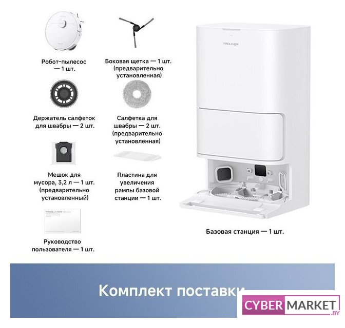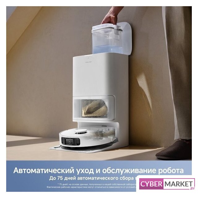 влажная уборка, сила всасывания 13000 Па, пылесборник 0.32 л, с турбощеткой, навигация: контактный бампер, лидар, камера TOF (3D), датчики перепада высоты, лазерные датчики препятствий, план нескольких этажей, база самоочистки
