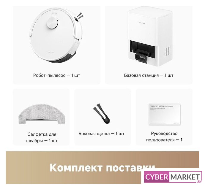 | Комплектация | Робот-пылесосБазовая станцияСалфетка для швабрыБоковая щеткаАдаптер питания |
