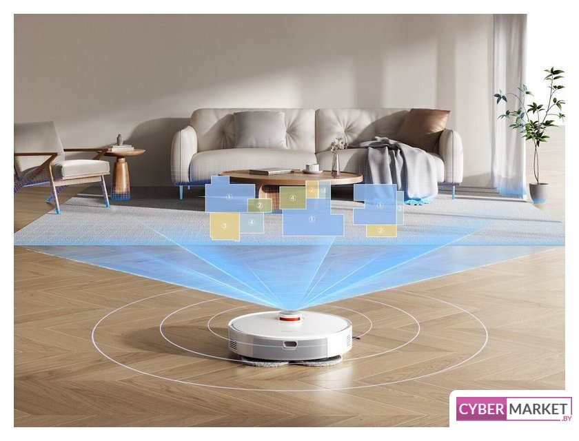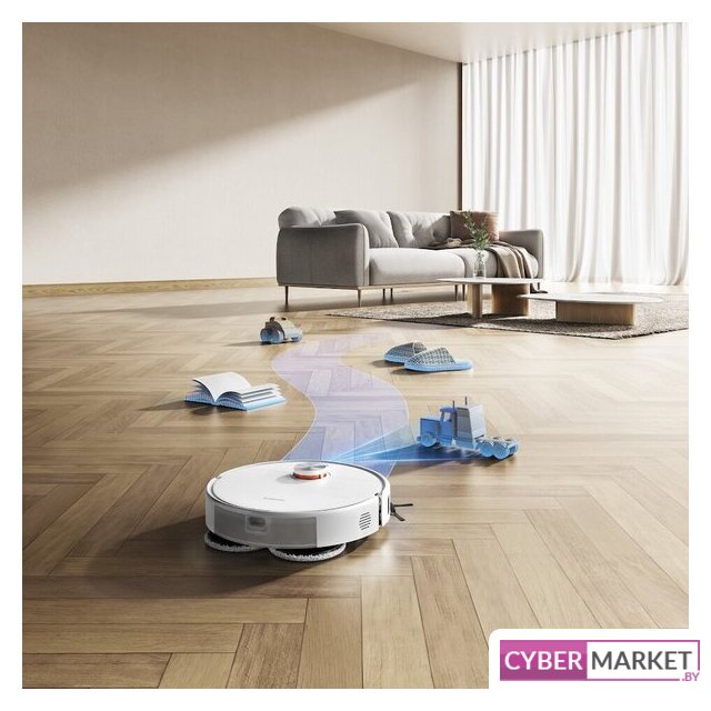 влажная уборка, мощность 32 Вт, сила всасывания 2500 Па, пылесборник 0.35 л, с турбощеткой, навигация: контактный бампер, лидар, датчики перепада высоты