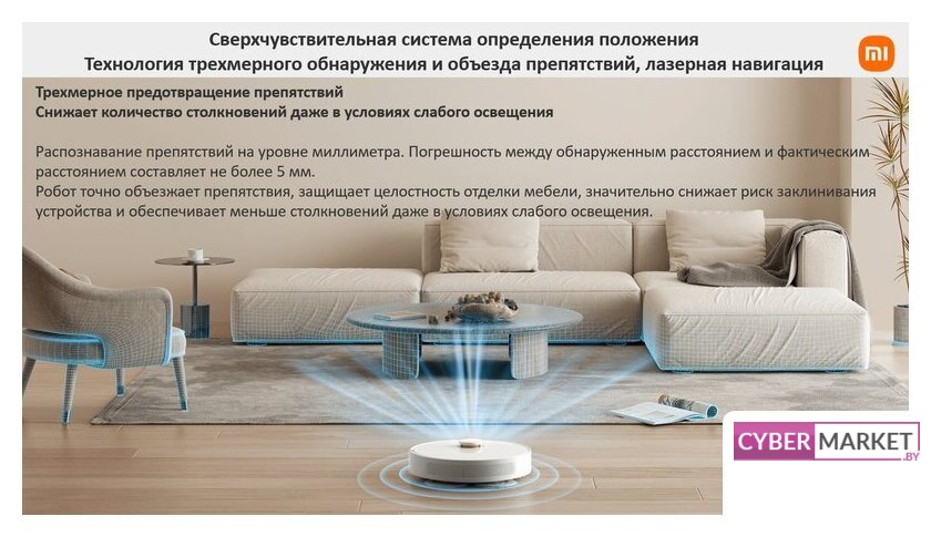 влажная уборка, Яндекс Алиса/Amazon Echo/Google Home, мощность 50 Вт, пылесборник 0.5 л, с турбощеткой, лидар