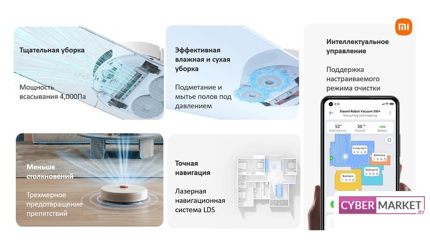 | Функциональные особенности пылесоса | локальная уборка, уборка по расписанию, виртуальная стена в приложении, автовозврат на базу, определение ковров |