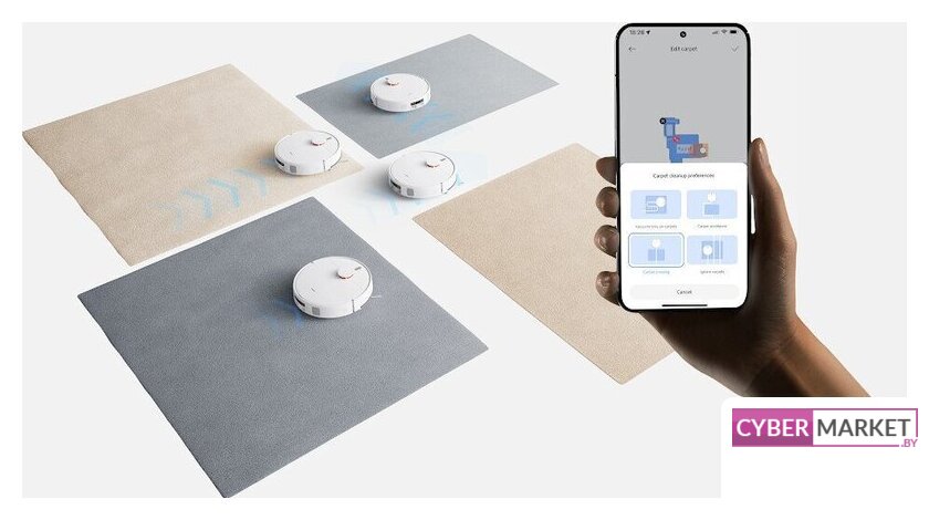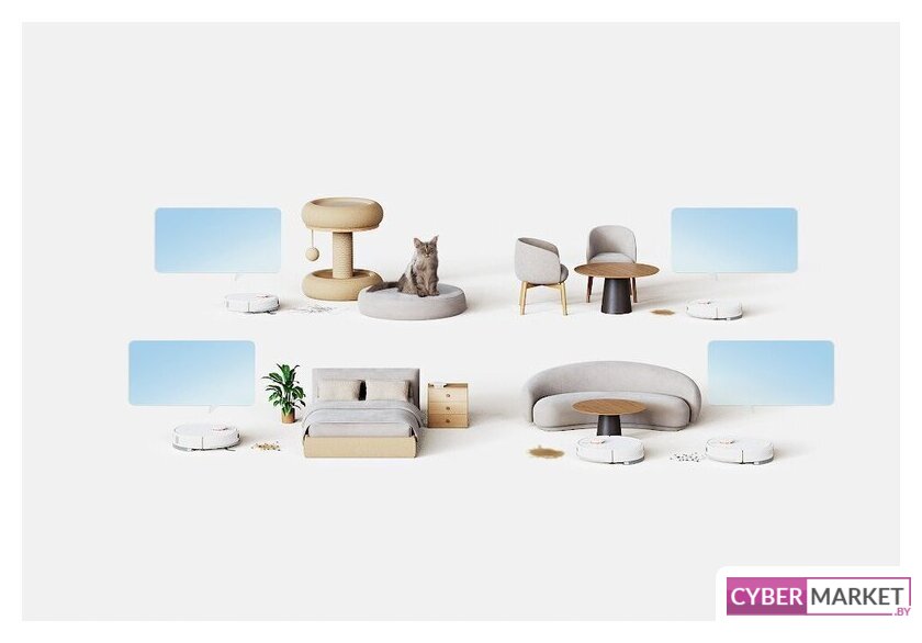 влажная уборка, фирменное приложение, сила всасывания 10000 Па, пылесборник 0.5 л, с турбощеткой, навигация: контактный бампер, лидар, датчики перепада высоты, лазерные датчики препятствий