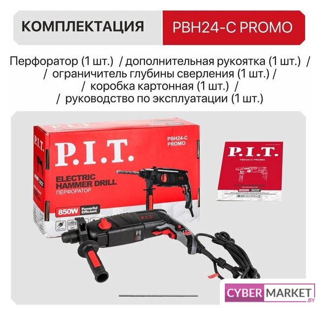| Комплект поставки | - Перфоратор, - ограничитель глубины сверления, - дополнительная рукоятка, - коробка, - руководство по эксплуатации. |