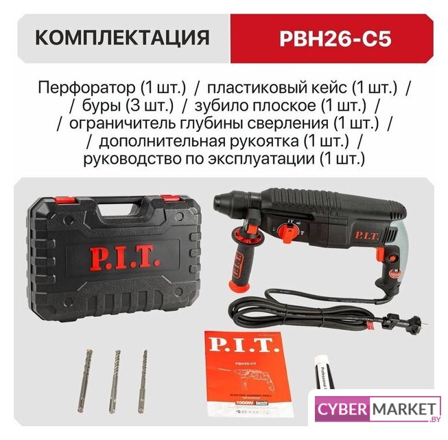| Комплект поставки | - Перфоратор, - пластиковый кейс, - буры (3 шт), - ограничитель глубины сверления, - смазка для буров, - дополнительная рукоятка, - инструкция по эксплуатации. |
