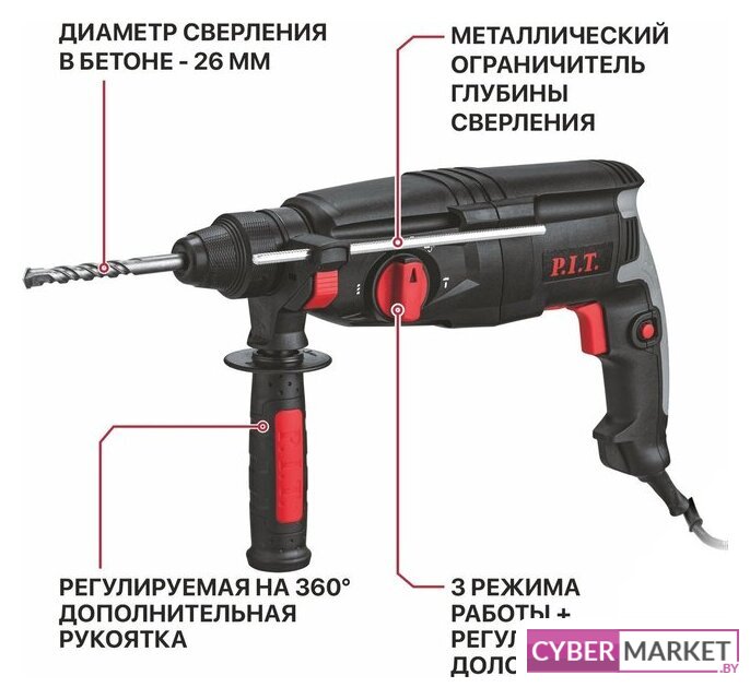 800 Вт, питание: сеть, 5600 ударов/мин, энергия удара: 3 Дж, 3080 г