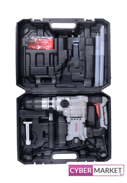| Комплект поставки | - Перфоратор;- Боковая рукоятка;- Бур;- Долото;- Смазка ударного механизма;- Ключ для пластиковой заглушки;- Паспорт;- Кейс пластмассовый. |