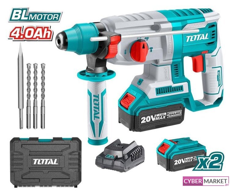 | Комплект поставки | - Перфоратор;- Дополнителная рукоятка;- Ограничитель глубины;- Аккумулятор 4,0 Ач - 2 шт.- Быстрое интеллектуальное зарядное устройство - 1 шт.- Буры 6x150, 8x150,10x150 мм. - 3 шт.- Долото - 1 шт.- Кейс. |
