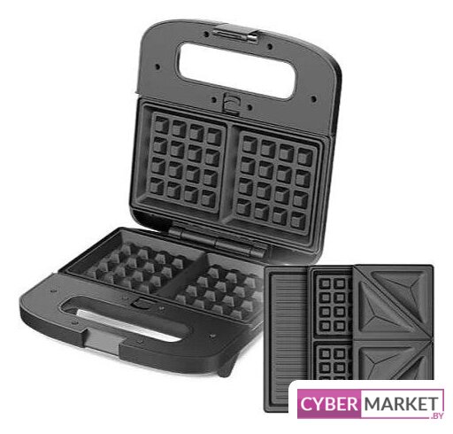 многофункциональная сэндвичница, 800 Вт, поверхность: гриль-пластина/форма для 2 ломтиков хлеба/вафельница/орешница, съемные плитки, вид выпечки: венские (бельгийские) вафли/орешки/гриль/сэндвич, черный