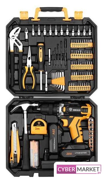 | Комплектация | Дрель-шуруповерт 1 шт зарядное устройство2 шт аккумулятор11 шт 1/4" биты: SL4,5.5, PH1,2, PZ1,2, H3,4, T10,15,20,1 шт 1/4" универсальный шарнир,1 шт магнитный держатель бит 60мм,1 шт 1/4" x3 удлинитель,1 шт переставной ключ,1 шт 6" плоскогубцы,1 шт держатель бит 6,35 мм,Шестигранные ключи: 1,5-6 мм,5 шт сверла: 2,3,4,5,6мм,50 шт 25L биты: SL3,3,4,5,6, PH0,0,1,1,2,2,3,3, PZ0,0,1,1,2,2,3,3, H1,5, 1,5,2,2,3,4,4,5,5,5,5,6,6, T10,15,20,25,27,30,35, S0,0,1,1,2,2,3, 3, AD, AD, 9 шт. 1/4" розетки: 5,6,7,8,9,10,11,12,13 мм,1 шт измерительная лента 3м,1 шт молоток,1 шт строительный нож 18мм,103 шт крепежКейс |