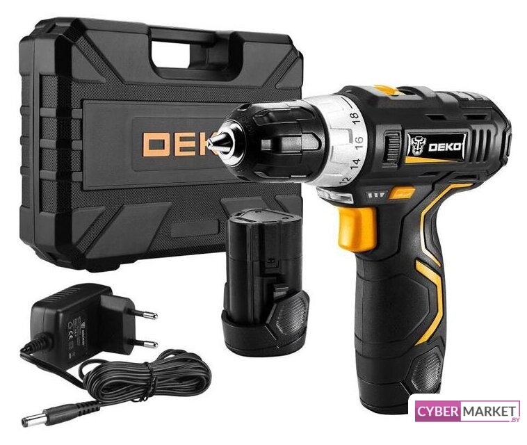 | Комплектация | - Дрель-шуруповерт;- Аккумулятор - 2 шт;- Зарядное устройство;- Биты - 6 шт;- Держатель бит;- Сверла - 6 шт;- Инструкция;- Кейс. |