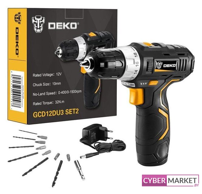 | Комплектация | - Дрель-шуруповерт;- Аккумулятор - 1 шт;- Зарядное устройство;- Биты - 6 шт;- Держатель бит - 1 шт;- Сверла - 6 шт;- Инструкция;- Коробка. |