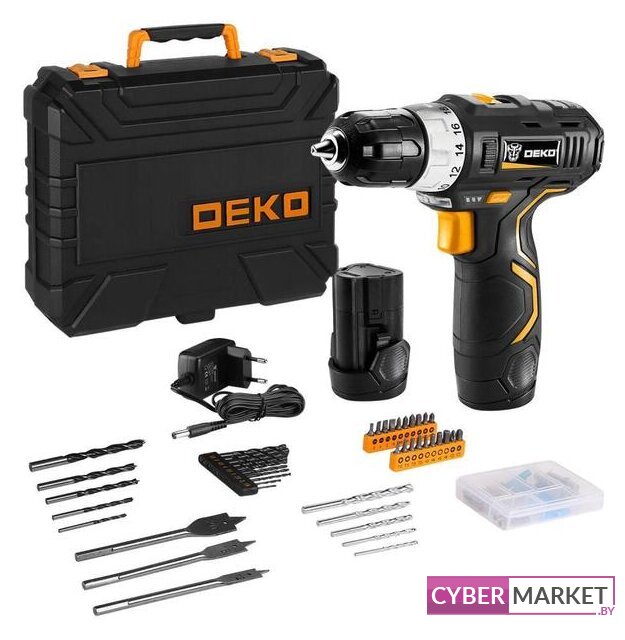 | Комплектация | - 1 шт. аккумуляторная дрель;- 5 шт. сверла для дерева 3,4,5,6,8мм;- 5 шт. сверла для каменной кладки 3,4,5,6,8 мм;- 10 шт. сверла витые 1,5,2,2,5,3,3,5,4,4,5,5,5,5,6 мм;- 20 шт. биты SL3,4,5,6, PH0,1,2,3, PZ0,1,2,3, T10,15,20,25, H3,4,5,6;- 1 шт. магнитный держатель для бит 60 мм;- 3 шт. сверла плоские 12,16,20 мм;- 48 шт. крепежи;- 1 шт. зарядное устройство;- 1 шт. допролнительный аккумулятор. |